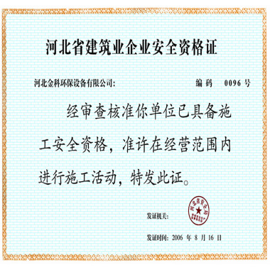 Home >> Patent >> Hebei Province Construction Enterprise Safety Qualification Certificate
